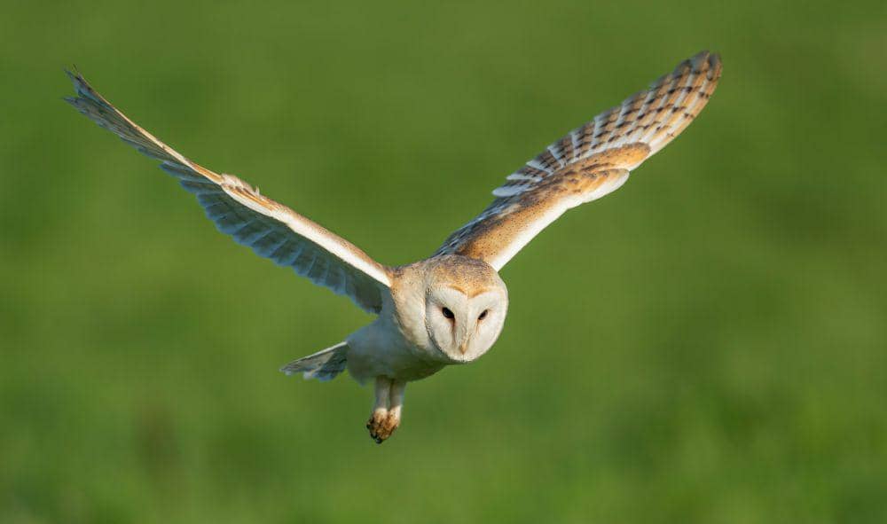 Barn Owl mampu terbang sangat senyap karena struktur bulu yang lembut dan sayap yang khusus, sehingga mangsanya tidak mendengar ketika mereka mendekat.
